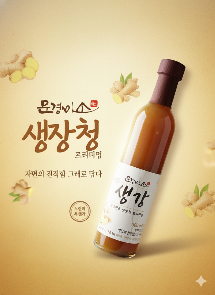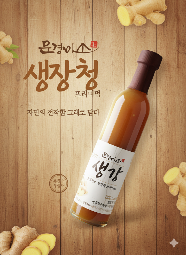 엄선된 **국내산 생강(경북 문경)**을 사용하여 전통 방식으로 정성껏 담아낸 프리미엄 생강청입니다.