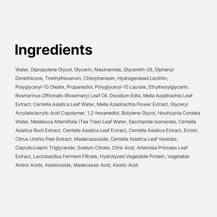• Dual skincare ingredients including Centella Asiatica and Tea Tree Leaf Water