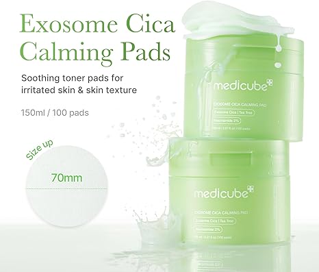 Medicube Exosome Cica Tea Tree Calming Toner Pads, Hydrating Daily Care for Sensitive Skin, Vegan, 100 Pads/메디큐브 엑소좀 시카 티트리 카밍 토너 패드 민감성 피부용 데일리 보습 케어
